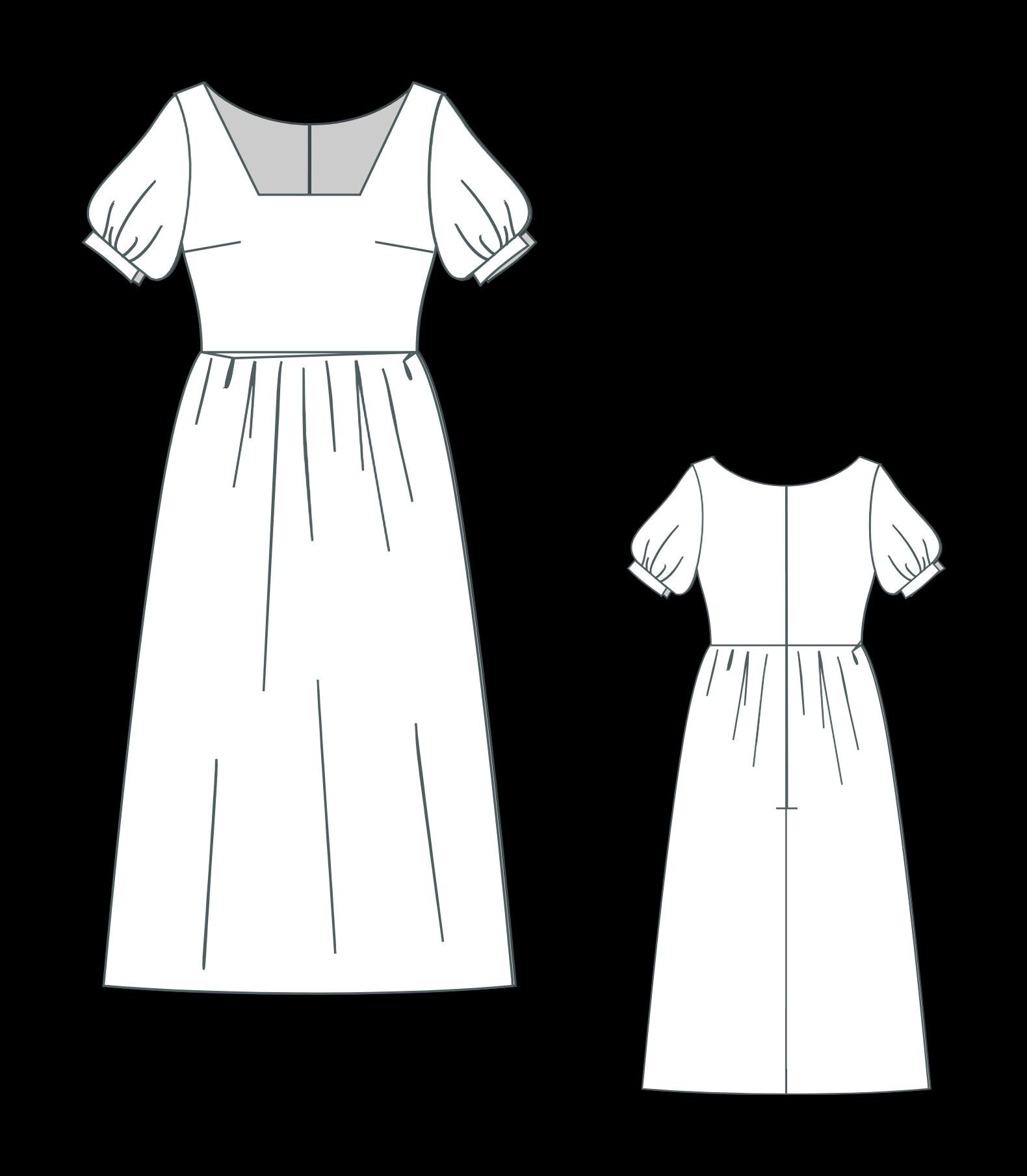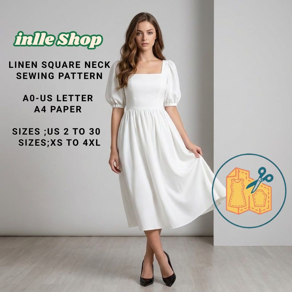 Linen Square Neck Summer Dress Sewing Pattern,Midi Dress,Cottagecore Dress Pattern,Evening Dress,Gathered Dress Pattern, available as an instant download (pdf) sewing pattern bundle with a range of size options, including plus sizes ;